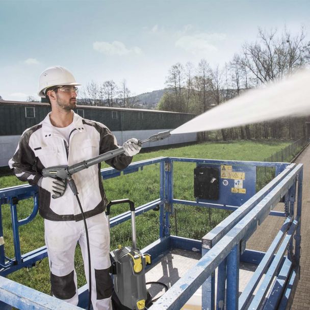 Aparatul este echipat cu pistolul EASY!Force, care utilizează reculul jetului pentru a reduce complet forța necesară la menținerea trăgaciului apăsat, oferind confort maxim în utilizare. Conexiunile rapide EASY!Lock garantează o fixare solidă și durabilă, dar permit schimbarea accesoriilor de cinci ori mai rapid decât sistemele tradiționale cu șuruburi. În plus, tamburul de furtun integrat cu furtun de 15 metri asigură un confort sporit și o rază mare de acțiune, fiind ideal pentru curățarea fațadelor, pardoselilor, aleilor sau vehiculelor.