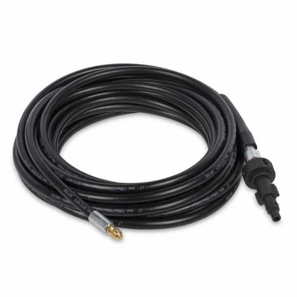 Furtunul de inalta presiune cu o lungme de 8 m iti asigura libertate de miscare si autonomie ridicata, poate fi depozitat simplu, fara a se deteriora pe tambur. Cuplarea furtunului la pistol si pompa se realizeaza usor, in timp scurg datorita cuplelor rapide.