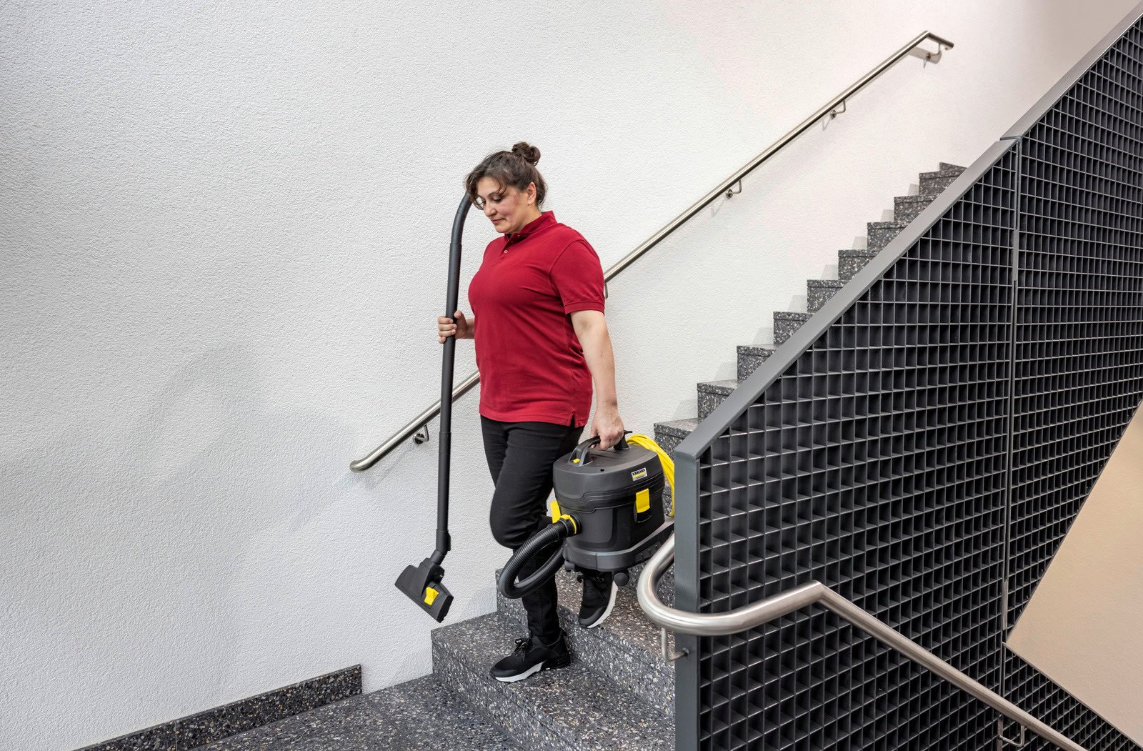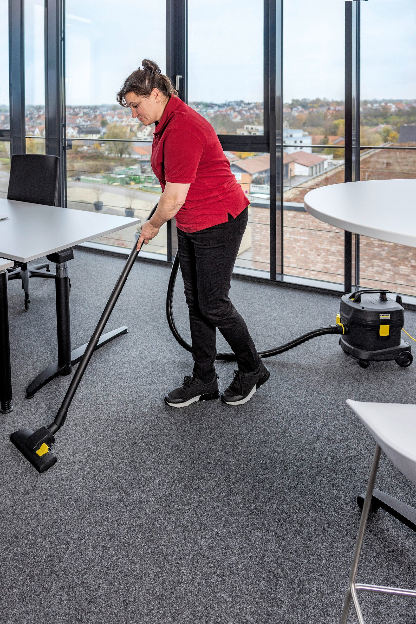 Designul compact și robust, alături de recipientul de 11 litri și greutatea redusă de numai 4,2 kg, îl fac ideal pentru utilizare îndelungată fără oboseală. Nivelul de zgomot de doar 61 dB(A) permite utilizarea sa chiar și în spații sensibile la zgomot, precum hoteluri, birouri sau spitale. Aspiratorul dispune de mâner ergonomic pentru transport facil și de un sistem de depozitare integrată a accesoriilor și cablului de alimentare, pentru un plus de comoditate. În pachetul de livrare sunt incluse furtunul de aspirare de 2 m, trei tuburi de aspirare din plastic, duza pentru podea, un sac de filtrare din pâslă și un filtru de protecție pentru motor.
