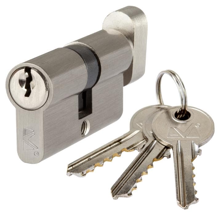 Cilindru Alama cu Buton ETS lungime totala: 65mm, Tip: Descentrat, dimensiuni: 30+35mm, culoare: Alama, numar de chei: 3