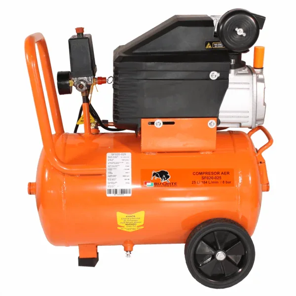 Compresor de aer cu piston BISONTE SF020-025 cu ulei 230V 2,0 cp, debit aer 187 l/min presiune 8 bar