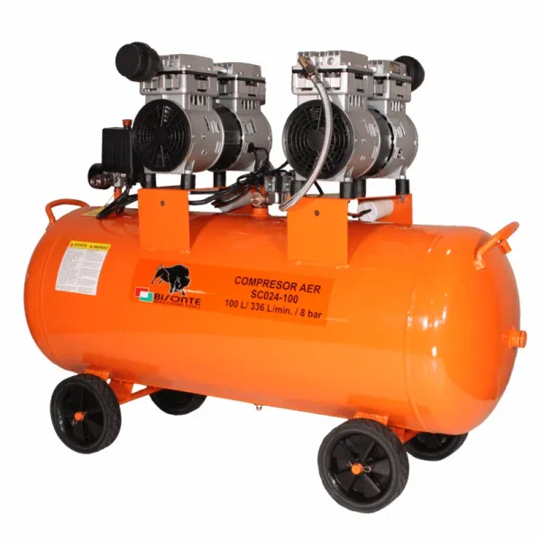 Compresor de aer cu piston BISONTE SC024-100 fara ulei 230V 1,2 cp debit 336 l/min presiune 8 bar