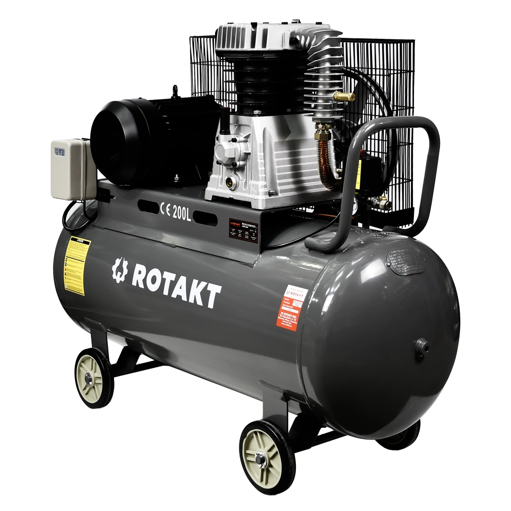 Compresor Cu 2 Pistoane Rotakt ROCP‑S200, Putere 4 kW, 400V, Presiune 10 bar, Debit 460 lmin, Capacitate 200l