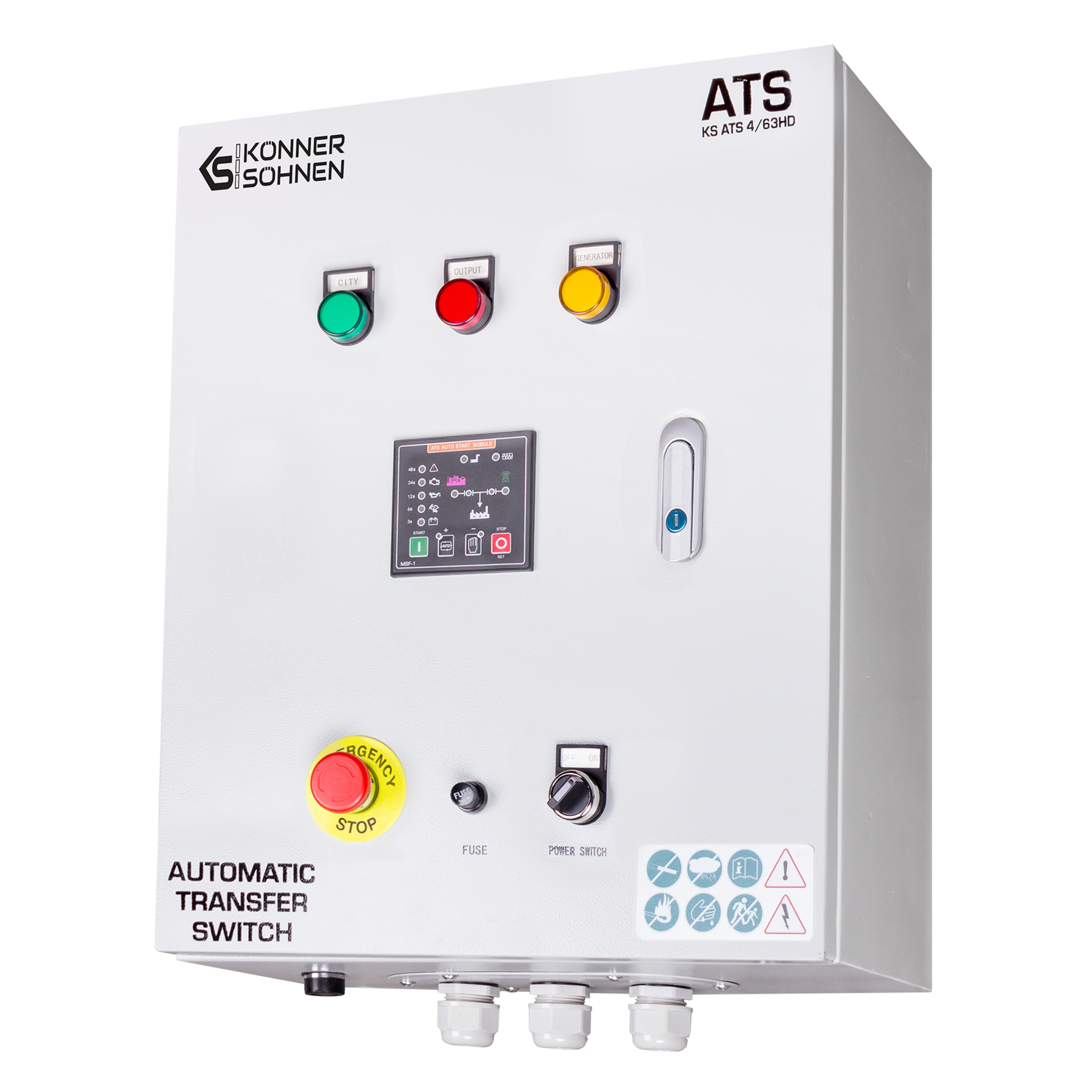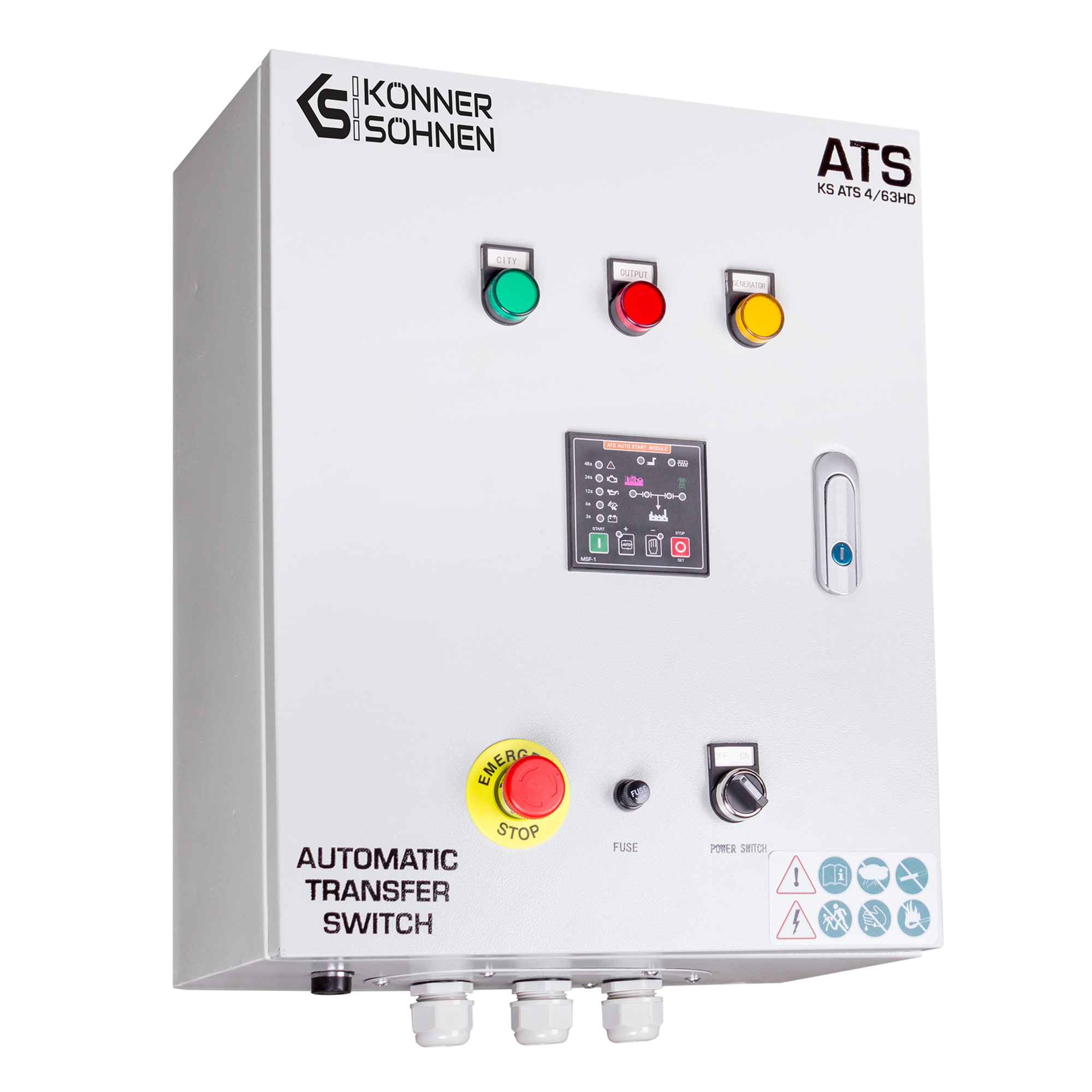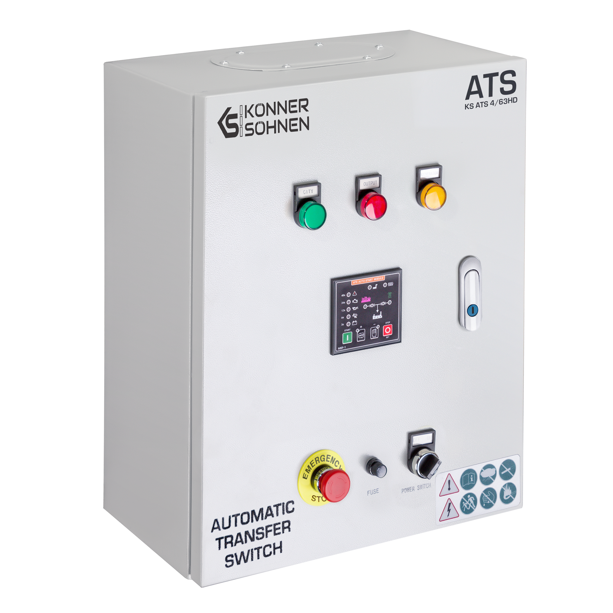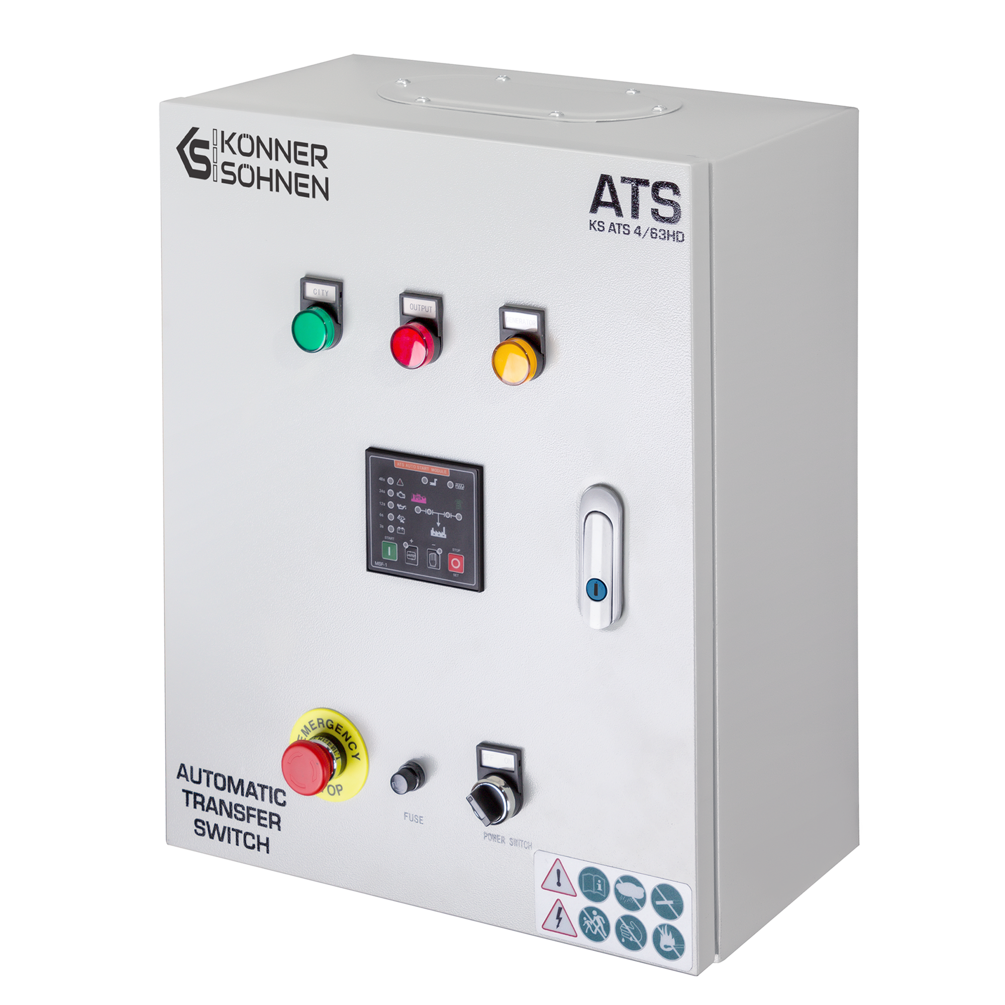 Întrerupătorul automat de transfer (ATS) KS ATS 4/63HD de la Könner & Söhnen pornește automat generatorul și comută sarcina pe acesta atunci când alimentarea principală este deconectată, și oprește automat generatorul atunci când alimentarea principală este restabilită.