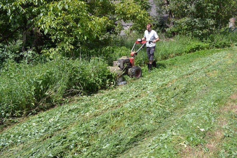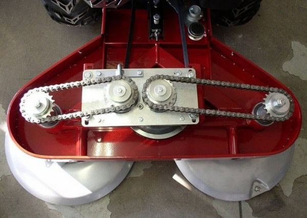 Cureaua trapezoidala dintre motor și cutia de viteze reduce posibilitatea deteriorării, în special a arborelui cotit al motorului și a altor părți principale ale mașinii, atunci când mașina de tuns lovește obstacole solide, cum ar fi pietre, borduri de beton sau țevi de oțel. Datorită antrenării cu lanțuri a tamburilor de tăiere, lamele se suprapun și nu se întâlnesc astfel încât să poată fi la aceeași înălțime.Prin urmare, iarba este tăiată uniform fără așa-numitele „smocuri” cauzate de mașinile de tuns iarba care au tamburi la diferite înălțimi.