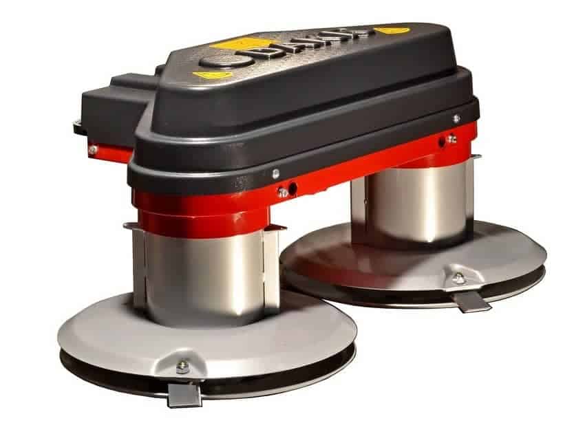 Tamburii de cosit au glisoarele roților din oțel. Fiecare tambur are două lame rotative robuste care sunt întărite special pentru a fi suficient de dure, dar nu fragile în același timp. Tamburii de tăiere sunt presati în punctul de atașare al lamelor pentru a crește rezistența tamburilor.Tamburii de cosit sunt antrenati de lanțuri și cutie de viteze. Rotația este transmisă de la cutia de viteze la motor printr-o curea trapezoială fabricată de compania germană Optibelt special pentru utilajul DAKR RZS121. În comparație cu curelele trapezoidale obisnuite, transmite sarcini semnificativ mai mari fără modificări de lungime cauzate de încălzire.