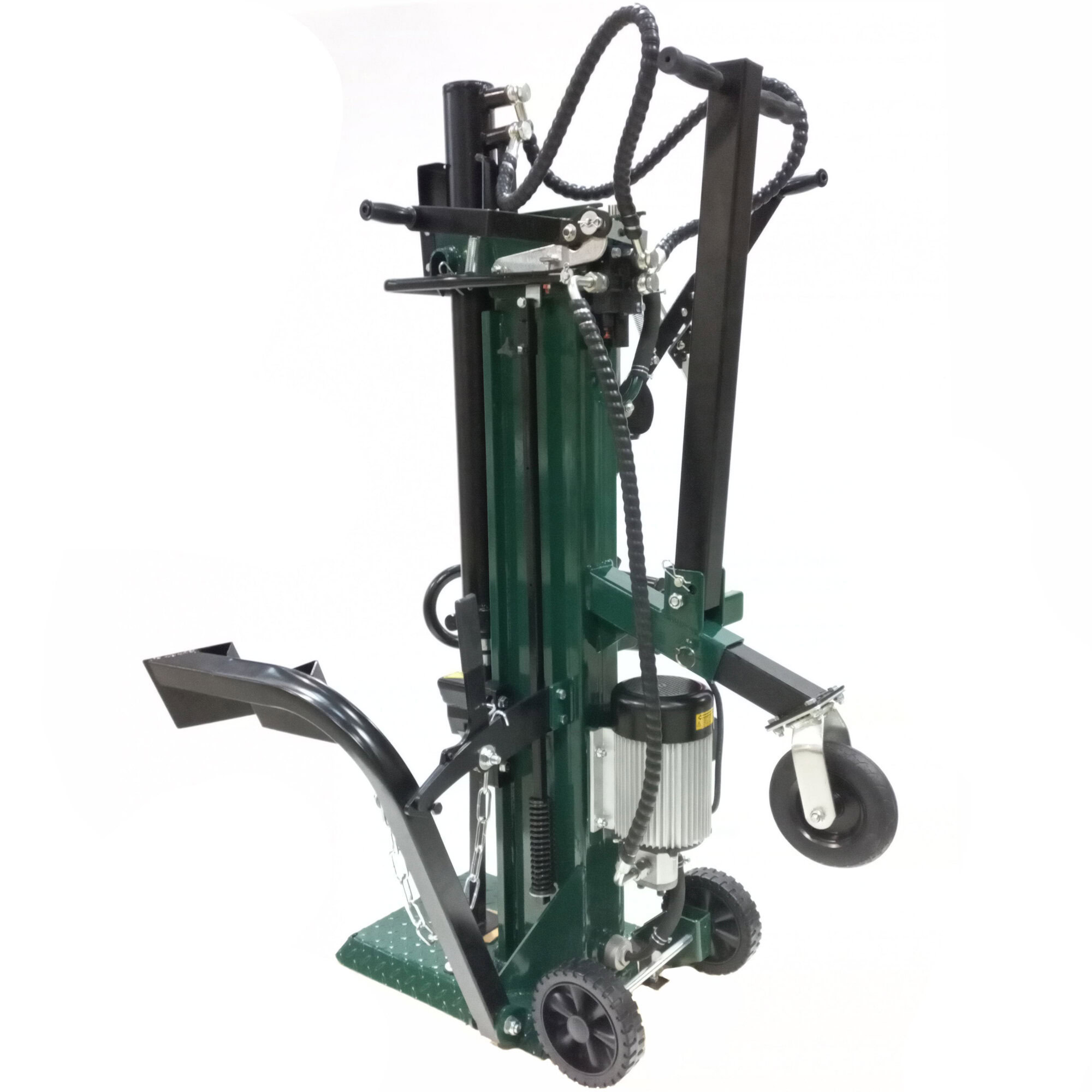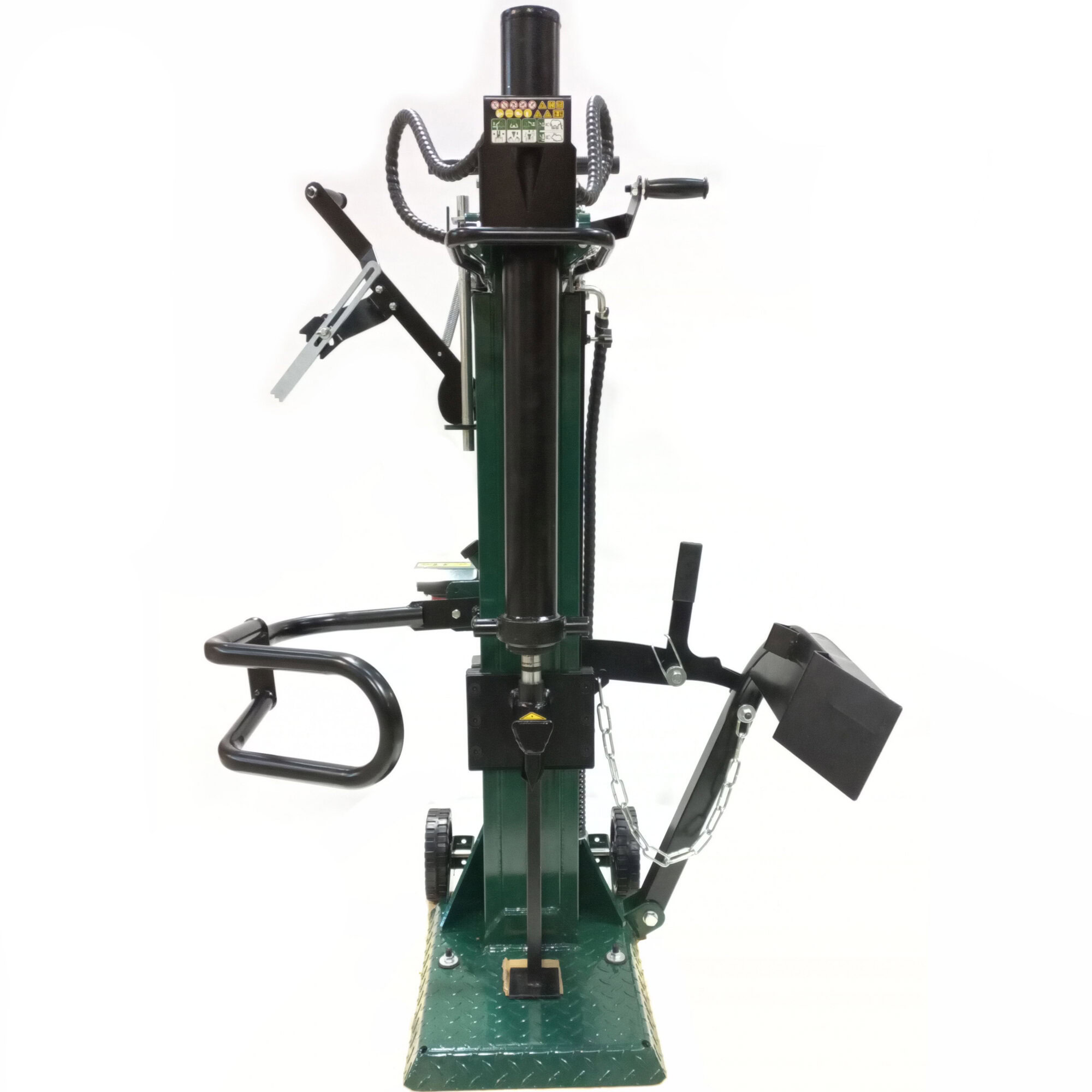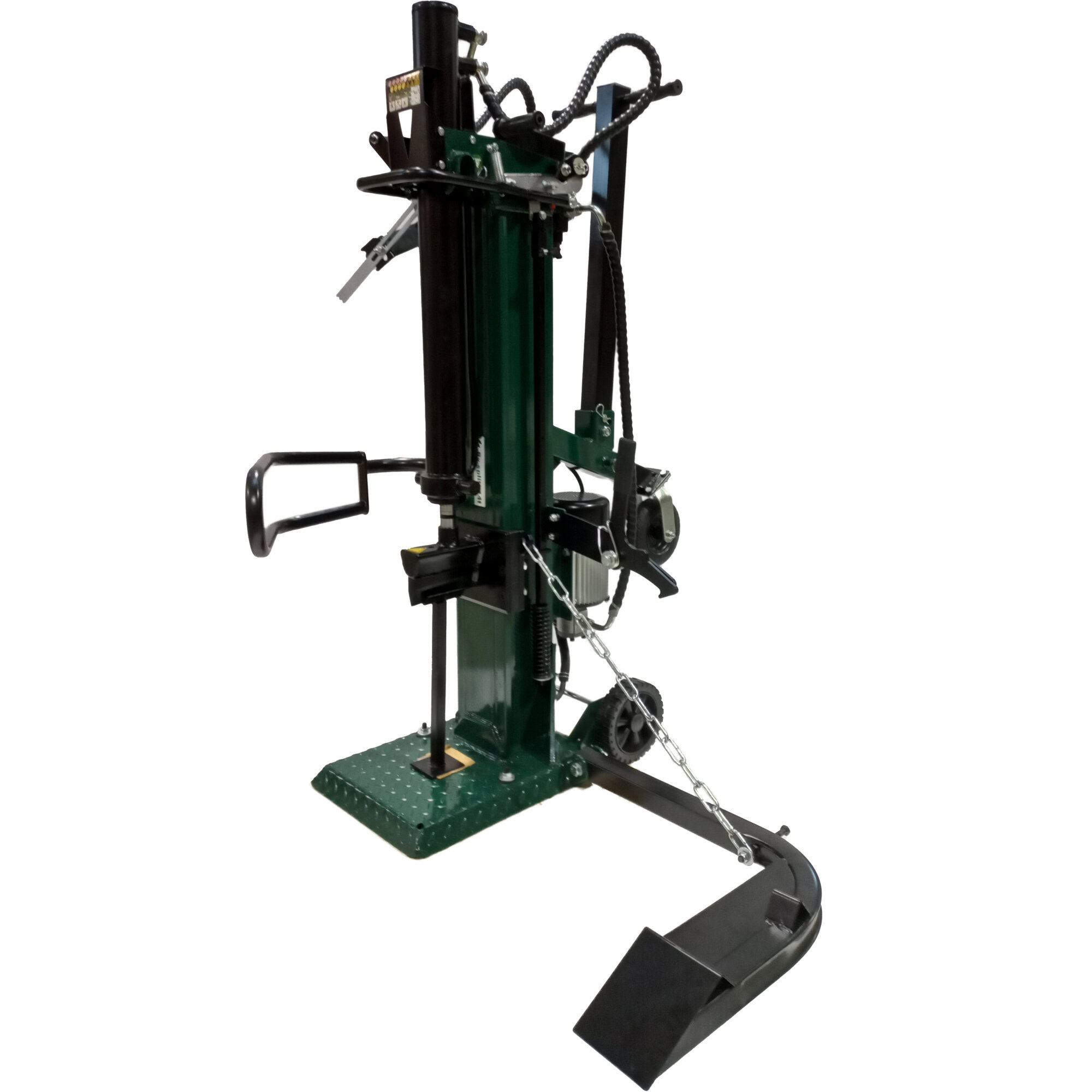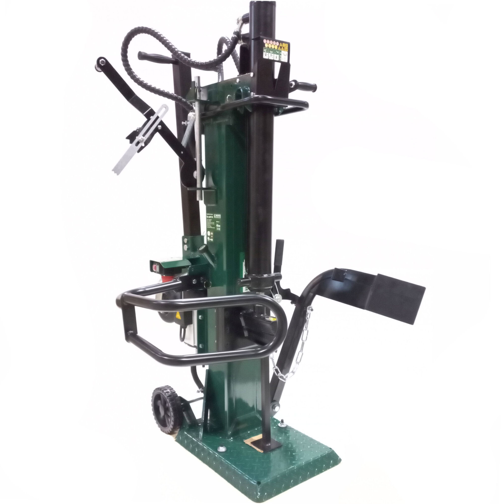 Despicatorul vertical de busteni crapă bucati de lemn cu o lungime de pana la 104 cm. Se realizează o forță maximă de despicare de 14,0 t. Pompa hidraulică de înaltă calitate permite o performanță constantă la presiune maximă. Datorită construcției solide și utilizării materialelor de înaltă calitate, greutatea despicatorului de bușteni este de 175 kg. Despicatorul de busteni vertical trebuie alimentat printr-o conexiune la 380~400 V (tensiune inalta) si motorul are o putere de 3.500 W. Datorita roților, despicatorul de busteni poate fi deplasat.
