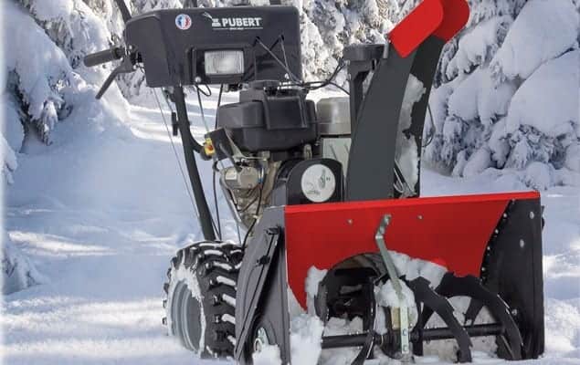 Freză de zăpadă Pubert Valto 24 – gamă premium, creată și fabricată în Franța, proiectată pentru deszăpezire rapidă și sigură pe alei, curți și parcări. Lățimea de lucru de 61 cm și transmisia robustă din fontă (lubrifiată cu ulei 80W-90) oferă performanță constantă, iar rotorul și melcul din oțel de calitate asigură înaintare eficientă în zăpadă tasată sau proaspătă. Curelele duble trapezoidale cresc fiabilitatea, iar manevrarea e facilă datorită direcției asistate, mânerelor încălzite și comenzilor jgheabului/deflectorului direct din ghidon. Dotările precum „Soft Grip” pentru ambreiaj, patine reversibile din oțel și farul integrat completează un pachet construit pentru utilizare confortabilă „mâini libere”.