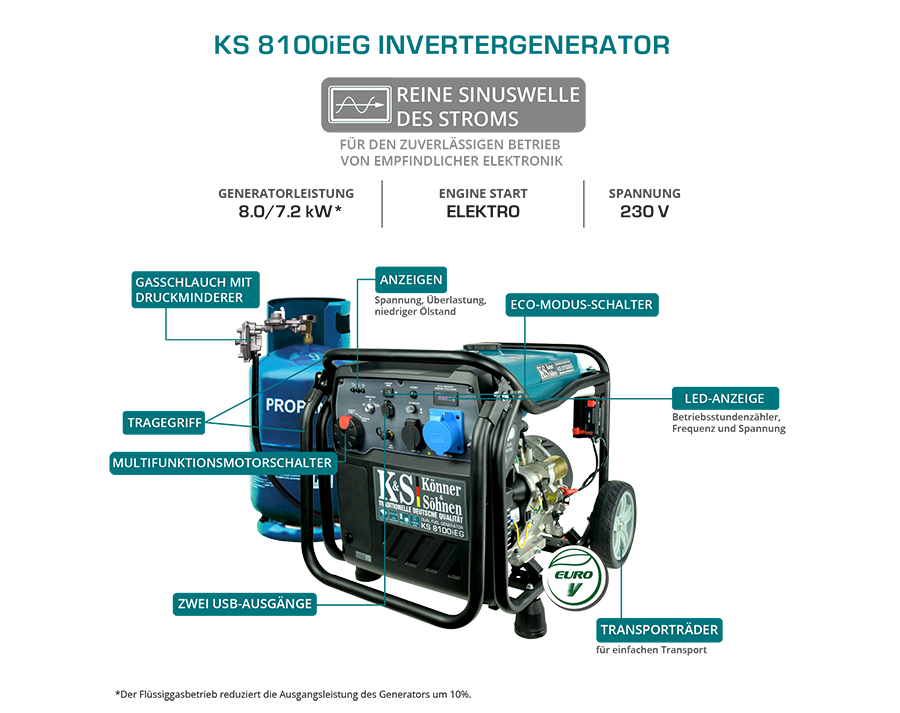 Unitatea electronică încorporată cu control cu microprocesor monitorizează funcționarea generatorului și oferă o tensiune de ieșire stabilă de 230V 50Hz formă sinusoidală, care este potrivită pentru funcționarea fiabilă a electronicelor sensibile