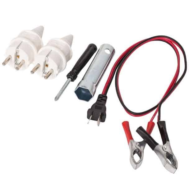 – clesti cu cablu si mufa pentru conectare la acumulator cu plumb;