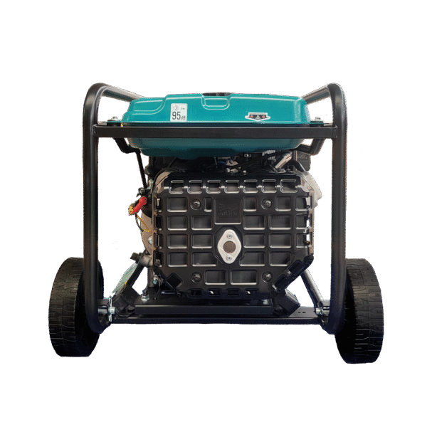 Motorul puternic EURO 5 respectă standardele ecologice, asigurând durabilitate și impact redus asupra mediului. Generatorul dispune de pornire electrică, mod ECONOMY pentru economii de combustibil, panou de control ergonomic cu afișaj LED și multiple ieșiri pentru priză și USB, oferind control complet și comoditate în utilizare. Roțile integrate și mânerul facilitează transportul și manipularea generatorului.