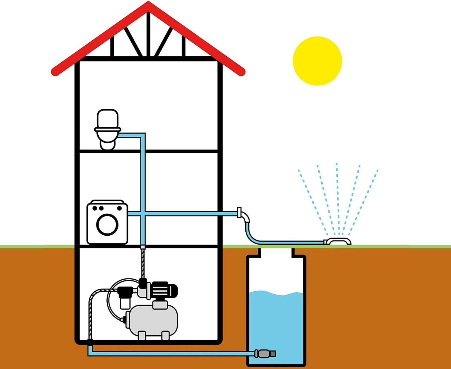Poate fi folosit și pentru a alimenta un sistem de irigare sau ca sistem de creștere a presiunii a apei în casă.