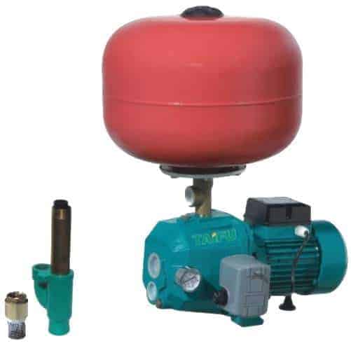Hidrofor cu ejector cu vas tampon de 24 litri dotat cu presostat, sorb cu sita metalica si supapa de sens.