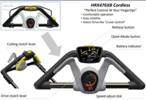 Aspect revitalizat al mașinii de tuns iarba HRX cu design armonios și finisaj lucios