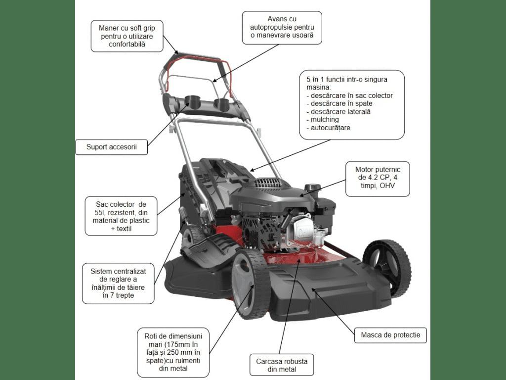 Masina de tuns gazon MEDIA LINE MG 48 S Benzina 4.2 CP 46 cm carcasa otel cos 55 l