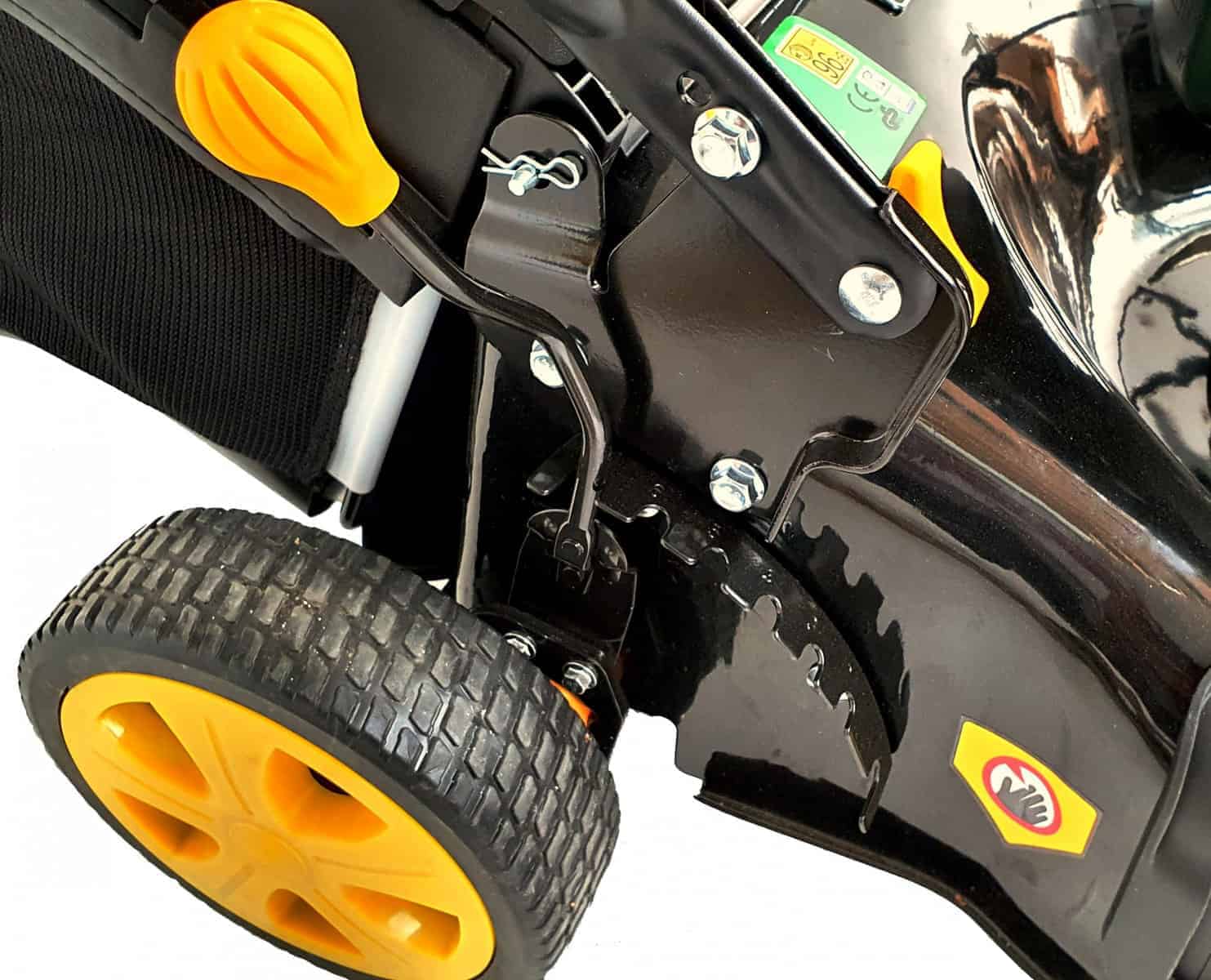 Masina ofera un reglaj al inaltimii central cu 7 trepte de reglare, care prezinta avantajul ca se regleaza inaltimea de taiere intr-un singur loc pentru toata masina, fata de modelele clasice in care ar trebui sa reglati inaltimea pentru fiecare roata in parte.