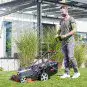 Reglare premium a înălțimii de tăiere centralizată în 6 setări, unde înălțimea de tăiere poate fi reglată între 20 și 75 mm. Cutia de iarbă din plastic/textil cu indicator de saturație are o capacitate de 45 de litri și poate fi încărcată eficient datorită formei aerodinamice a carcasei. De remarcat în mod deosebit este mânerul telescopic de împingere, care poate fi ajustat optim la înălțimea dumneavoastră. Mâner de reglare a înălțimii convenabil și cu funcționare lină – înălțimea de tăiere dorită poate fi setată super simplu prin apăsarea unui buton. cu mâner încorporat pentru transport și mulcire ușoară.
