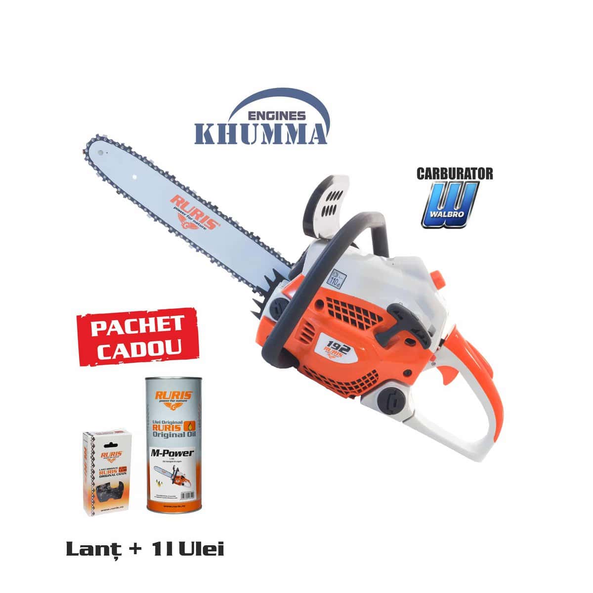 Motoferăstrăul RURIS 192, cu un motor de 2 CP, este ușor și eficient, constituind un ajutor de neînlocuit în gospodărie și pentru agricultură. Motoferăstrăul RURIS 192 are succes în toate gospodăriile, fiind apreciat de toți utilizatorii ca un motoferăstrău compact, ușor de folosit și de întreținut.
