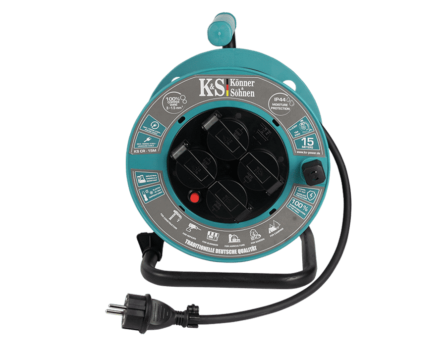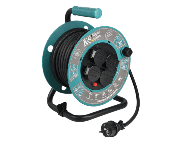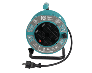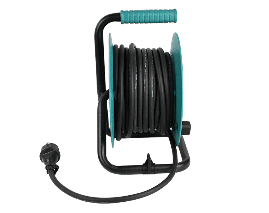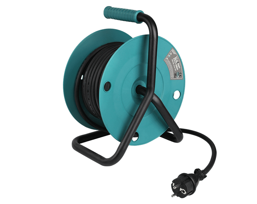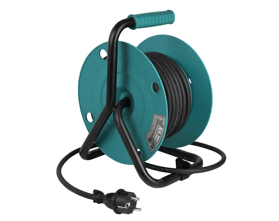 Bobina este făcută din plastic/metal ranforsat special, are o structură de cadru din plastic solid, rezistentă la șocuri. Acesta este dotat cu un mâner ergonomic din cauciuc pentru o deplasare confortabilă, cu un element de fixare cablu, cu un element de reglare a direcției cablului, cu un opritor pentru blocarea derulării necontrolate a bobinei. Lungimea cablului atinge 15 metri și poate servi la conectarea simultană la distanță a 4 aparate electrice.