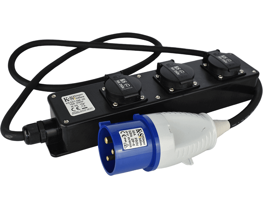 Prelungitoarele-adaptoare ТМ „Könner & Söhnen” sunt proiectate pentru a fi utilizate când este necesară conectarea aparatelor electromenajere cu o priză standard de 16A la o priză de 32A, de exemplu într-un generator. Utilizare la interior dar și la exterior, pe șantierele de construcții, în agricultură, dar și în locurile foarte umede.
